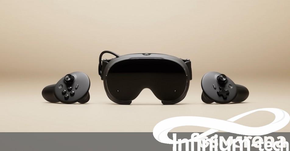 The headsets feature dual 2160×2160 LCD displays with a refresh rate of 72-144Hz. The headset uses foveated streaming so only the parts of the screen you’re actively looking at are streamed at high quality. This is achieved using a pair of eye tracking cameras inside the headset. There are also four more high-resolution monochrome cameras on the outside to track the controller and headset, and infrared LEDs make it possible to use the headset even in low-light environments. The headset also has built-in stereo speakers that force cancel each other out to avoid vibration.